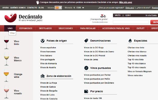 Desde su puesta en marcha en 2009, Decántalo ha centrado sus esfuerzos en ofrecer a sus clientes un seleccionado catálogo de vinos españoles. Pudiendo encontrar en él los top ventas y rarezas de alto interés para los apasionados del vino.
