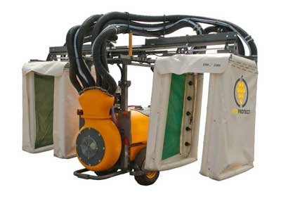 El pulverizador Ecoprotect permite realizar un tratamiento confinado al envolver la vid y cerrarla con una «película» de aire, lo que a su vez consigue que se reduzca el producto a utilizar. Sitevi, el Salón Internacional de la Viña, el Vino, las Frutas y las Verduras en su premio Palmarés de la Innovación 2013 le ha concedido la Medalla de Plata.