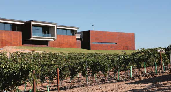 Las nuevas instalaciones, obra del arquitecto Gonzalo Tello, presentan un diseño respetuoso con el medio ambiente. Sus gruesos muros de hormigón y el semienterramiento de la zona de elaboración, a menos de cinco metros, provocan una baja inercia térmica entre el exterior y el interior de la bodega, asegurando una temperatura constante muy valiosa en el almacenamiento y conservación de los vinos blancos.