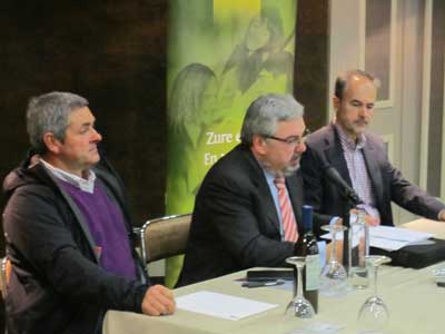 En la foto a la izquierda el nuevo presidente Iñaki Aretxabaleta, en el centro, el presidente saliente, Juan Carlos Ercoreca, y a la derecha el secretario técnico, Anton Txapartegi.