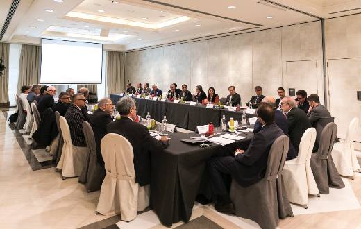 En torno a la mesa se reunieron 27 altos cargos de grandes empresas vitivinícolas de Francia, Alemania, Italia, Portugal y España para debatir las principales amenazas y oportunidades a las que se enfrenta el sector vitivinícola de la UE.