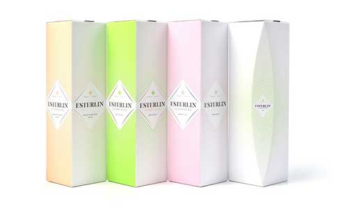 Grafopack firma la colección de estuches del champán Esterlin. De líneas limpias y motivo geométrico no pasa desapercibido.