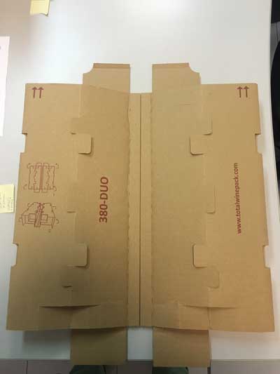 Otro de los galardones ha sido para Saica Pack Viana (Papelera del Ebro, S.A.) por su versátil embalaje para envío por mensajería de dos botellas o dos envíos de una.