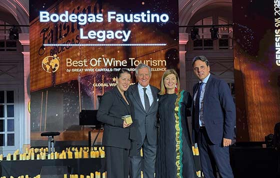 Los vencedores del Best Of Wine Tourism, un único distinguido por capital mundial del vino, representan la cúspide de la excelencia, dado que se miden con las compañías de enoturismo más sobresalientes de las once principales regiones vinícolas de los cinco continentes. Por al parte Bilbao-Rioja el galardón ha recaído en Bodegas Faustino (Rioja Alavesa) por su innovador centro de visitantes «El Legado» diseñado por Norman Foster.