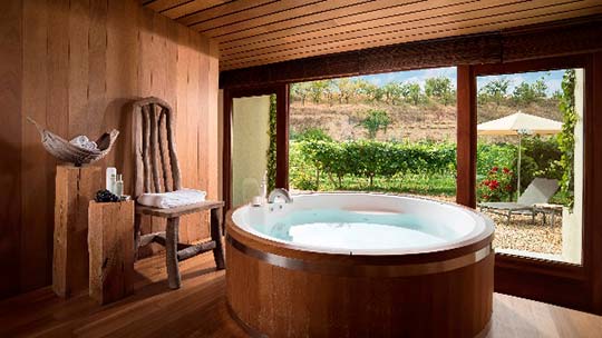 Una de las Denominaciones de Origen de vino más reconocidas y la más antigua de nuestro país (reconocida en 1925) es la de La Rioja. Un destino en el que encontramos alojamientos en los que vino y estancia maridan a la perfección, como el Hotel-Bodega Finca de los Arandinos, en Entrena, a tan solo 12 kilómetros de la capital. Situado entre viñedos y olivares, este hotel cuenta con una bodega propia y con la personalidad del diseñador David Delfín, encargado de los interiores.