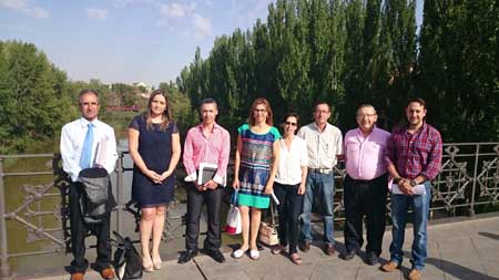 En la foto, de izquierda a derecha: Jesús Cuadrado, vocal por Peñafiel; Yolanda Bayo, vicepresidenta de la Ruta (presidenta de Asemar); Miguel Ángel Gayubo, presidente de la Ruta (representante del C.R.D.O.); Raquel González, tesorera (Alcaldesa de Aranda de Duero); Carmen Miravalles, vocal por Roa; Francisco José Núñez, vocal por Vadocondes; Jesús Tudanca, vocal por Afotur; y Félix Marina, vocal por Asohar.
