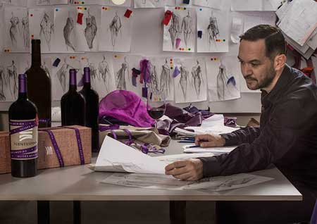 El diseñador Ulises Mérida y Bodegas Avelino Vegas han concebido una edición especial en botella magnum del vino Fuentespina que acompañará los actos de presentación de la próxima colección del diseñador español, que cuenta con prendas ‘teñidas’ de los tonos morados y granates característicos de este tinto.