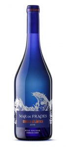 El diseño de este vino sigue una línea similar al conocido Mar de Frades Albariño y su clásica botella azul que lleva una serigrafía marina en blanco que contrasta con el tono del envase.