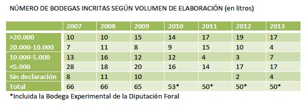 Además las bodegas han declarado haber elaborado 3.081 litros de vinos de vendimia tardía. En este volumen no se incluye la Bodega Experimental de la Diputación Foral de Bizkaia.