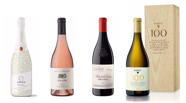 Codorníu tiene cuatro propuestas: el cava Anna de Codorníu, el rosado Pla dels Ángels, Viña Pomal Alto de la Caseta 2012 y su blanco más exclusivo, Raimat 100.